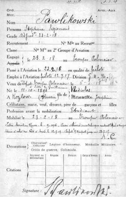 d’avions de reconnaissance Pawlikowski est abattu ainsi que