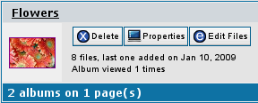 The album properties page can be accessed by clicking on "Properties" item next to the thumbnail that represents a particular album.